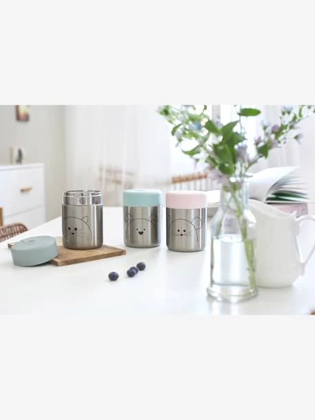 Avec le récipient isotherme double paroi en acier inoxydable, la bouillie ou le déjeuner des petits peut être servi tout de suite même en balade. Le récipient en acier inoxydable conserve les aliments au chaud ou au froid et le joint en silicone intégré dans le couvercle garantit l’étanchéité.