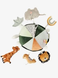 - Sur le dessus : lion à empiler en 5 parties, boulier avec chiffres « 1 2 3 » et zèbre dans un labyrinthe qui tourne autour du boulier