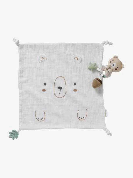 Ceci n’est pas un simple carré de gaze de coton ! C’est le nouveau compagnon que bébé ne saura plus quitter ! Un adorable ourson brodé qui ne demande qu’à être câliné. Il est accompagné de son petit hochet, destiné à être attrapé, secoué, mordillé…