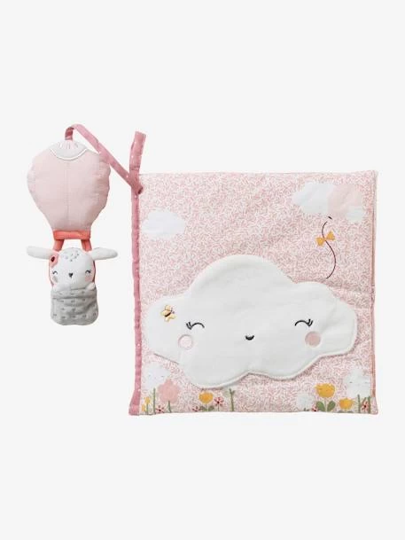 Livre d’éveil + peluches PAYS ROSE en coton et polyester.