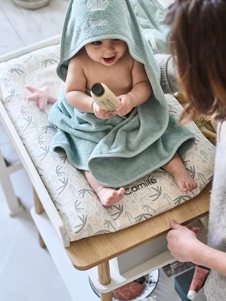 Cette housse en coton bâchette recouvre votre matelas à langer de jolis coraux. Elle est idéale si vous souhaitez avoir une housse de rechange sous la main et plaira à votre enfant avec son jouet étoile de mer avec clochette à l’intérieur.