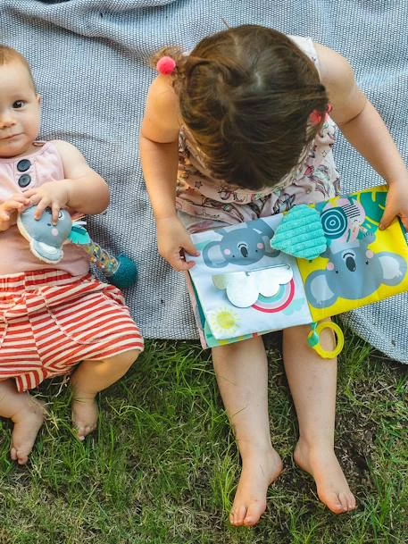 Un adorable livre en tissu à suspendre à la poussette ou au cosy qui permet à votre bébé de faire le plein de découvertes. A chaque page il se familiarise avec des matières et textures variées à toucher et à attraper.