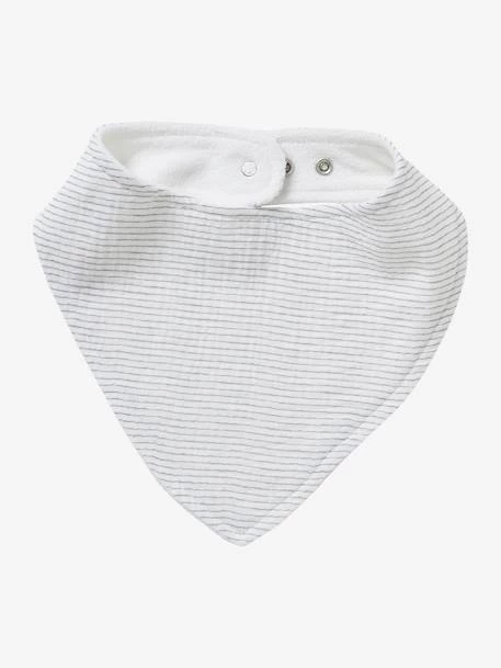 Les 3 bavoirs bandanas : face en éponge et gaze de coton. Dos en éponge 80% coton, 20% polyester.