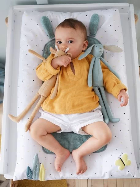 Un matelas à langer bien moelleux et rempli de tendresse pour le change de votre bébé. Son matelas en éponge en forme de lapin est amovible pour un lavage facilité !