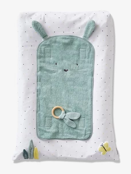 - Tapis à langer amovible avec visage de lapin brodé en éponge 100% coton maille indéfilable, doublé PVC, avec scratch