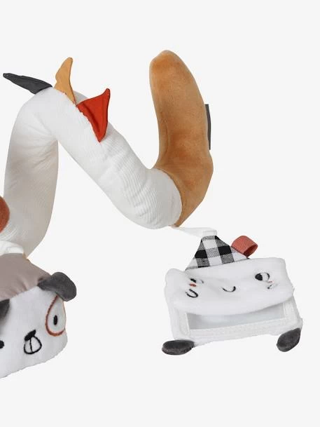 Toujours prête à s’enrouler pour émerveiller les bébés, cette spirale d’activités a plus d’un tour ! En velours tout doux, elle amusera votre enfant grâce à de petits jouets : maison avec miroir, anneau à billes, fanions, peluche avec clochette … Les différentes couleurs et textures de cette spirale d’activités participeront à l’éveil des sens des tout-petits. Cette spirale s’enroule sur la anse d’un cosy ou sur le bord du parc ou du lit et promet à l’enfant de superbes découvertes !