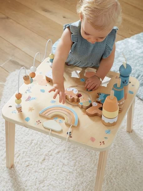 Sur cette belle table d’éveil, les amis de la forêt proposent aux enfants de nombreuses activités ! Boulier, formes à encastrer, animaux à empiler… tous les moyens sont bons pour émerveiller votre petit explorateur !