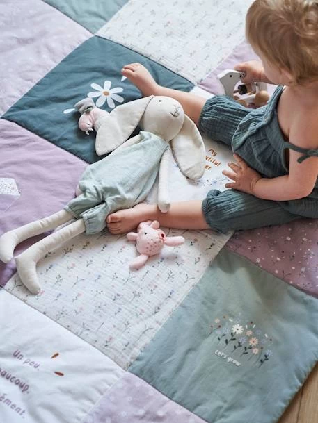 Un beau tapis de sol avec jeu de matières et de détails soignés ! Gaze de coton, popeline, fil doré, velours… tout ce qu’il y a de plus joli pour votre enfant est réuni sur notre couverture. Couvre-lit ou tapis de sol, à vous de personnaliser son utilisation pour entourer les petits de douceur.